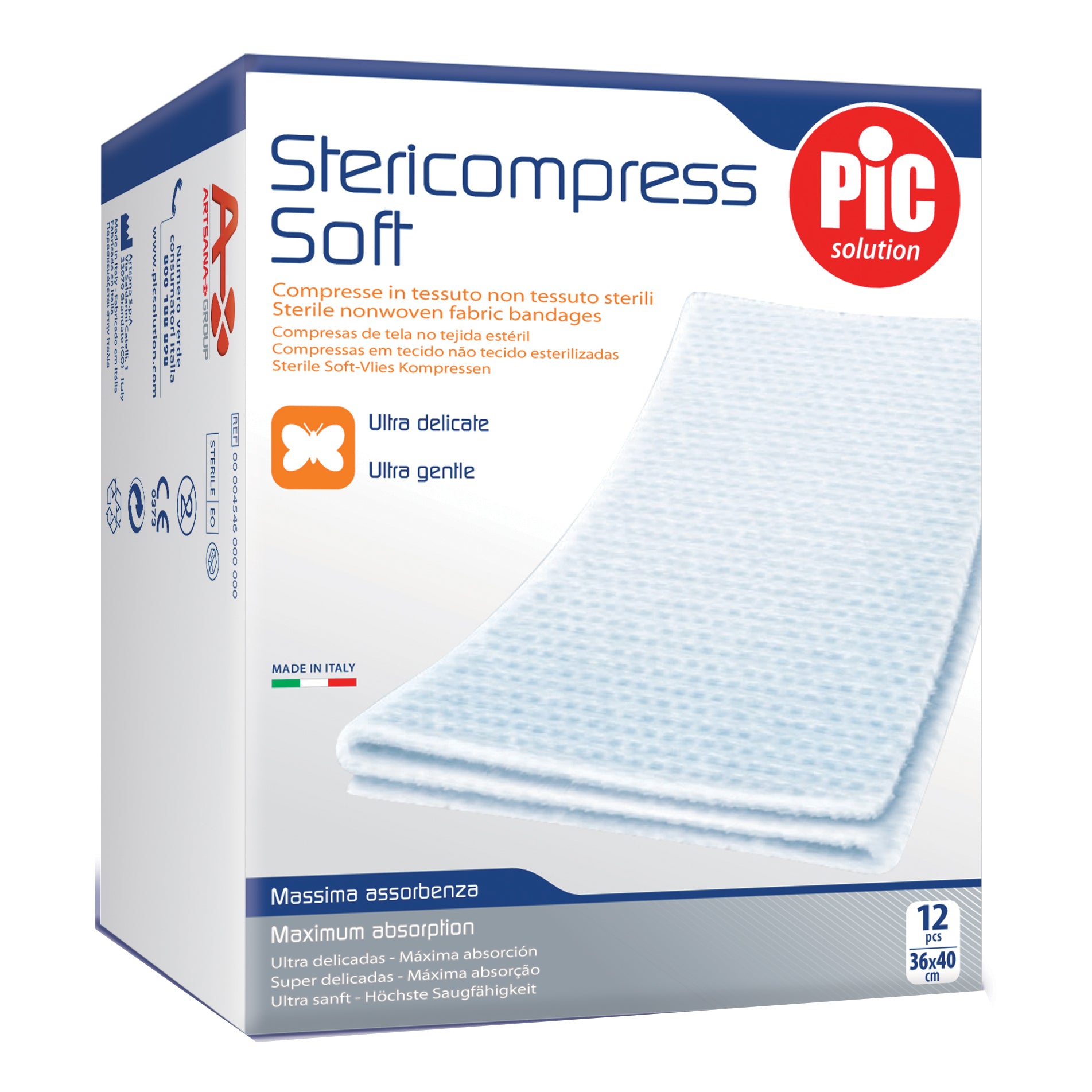 Stericompress Soft COMPRESSE TNT Indicazioni: particolarmente indicate per ogni tipo di medicazione domestica, sia nel caso di piccole ferite che nel caso di ferite post operatorie.