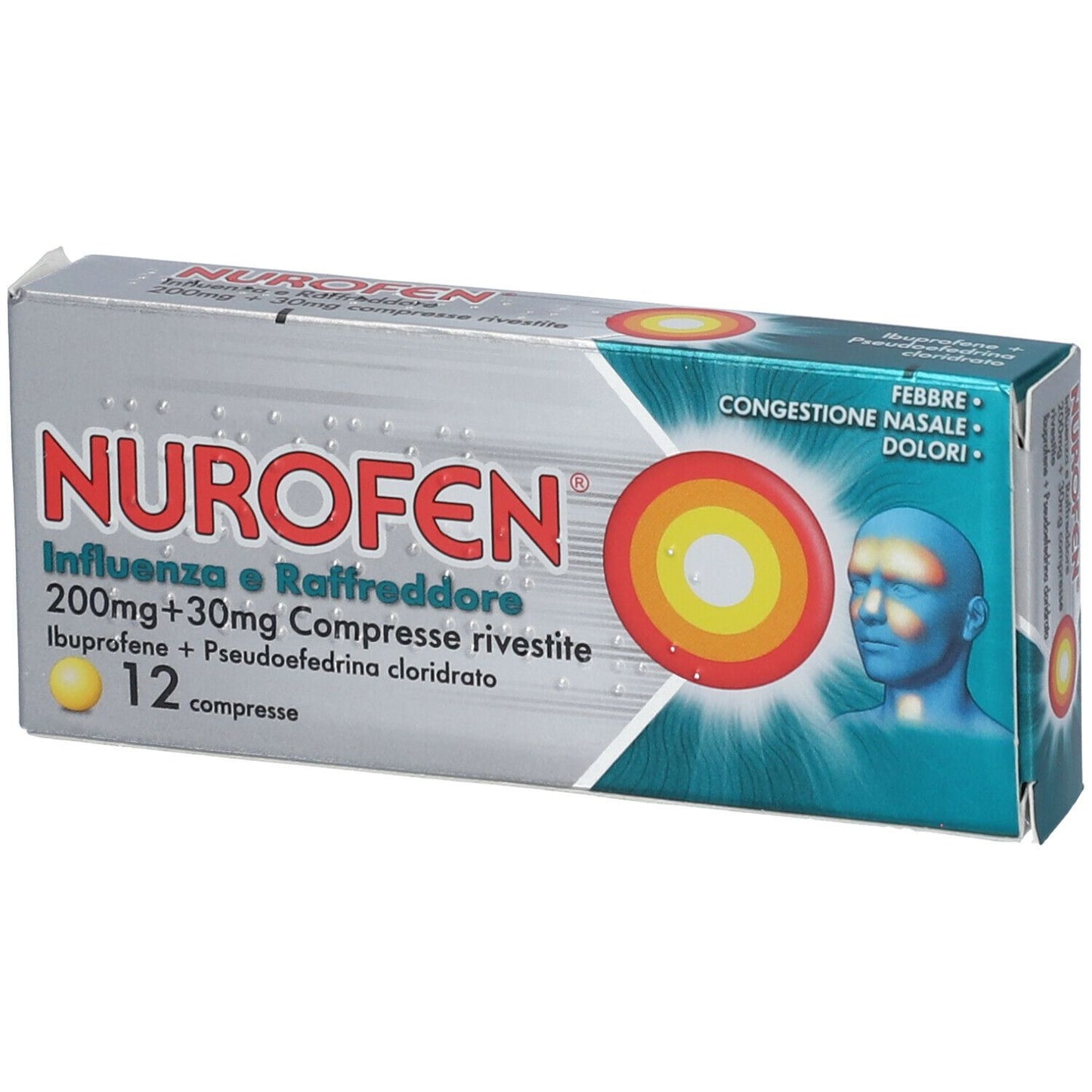 NUROFEN INFLUENZA E RAFFREDDORE 200 mg + 30 mg Compresse Rivestite, è indicato negli adulti e adolescenti oltre i 12 anni. Trattamento dei sintomi del raffreddore e dell'influenza quali congestione nasale e sinusale, dolori, febbre, mal di gola, mal di testa.