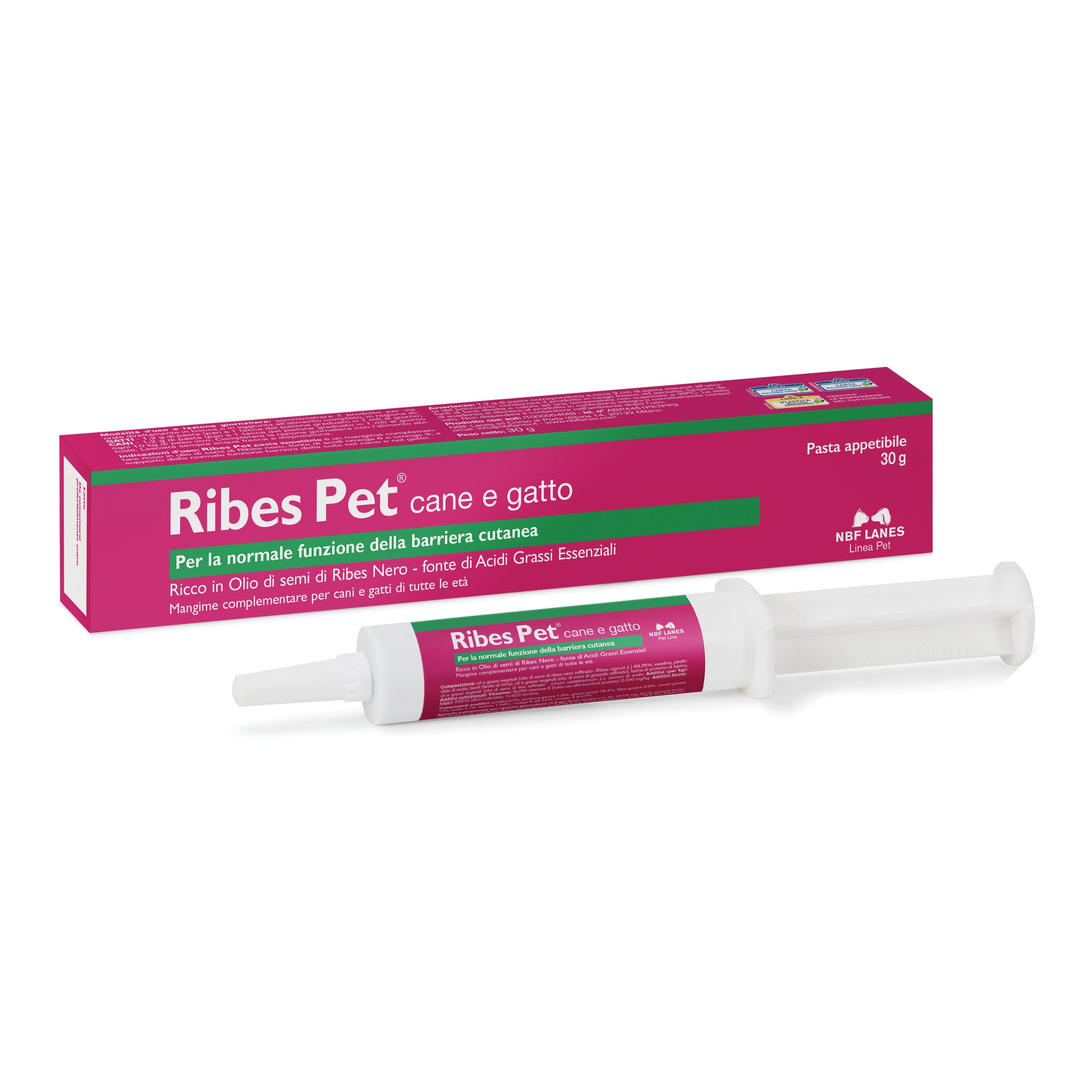 Mangime complementare per particolari fini nutrizionali. Supporto della funzione dermica in caso di dermatosi ed eccesiva perdita di peli. Utile per ripristinare la condizione di normalità in tutte quelle situazioni di alterazione della barriera cutanea. Prodotto in forma di pasta appetibile per cani e gatti con alto dosaggio di GLA (acido gamma linolenico).
