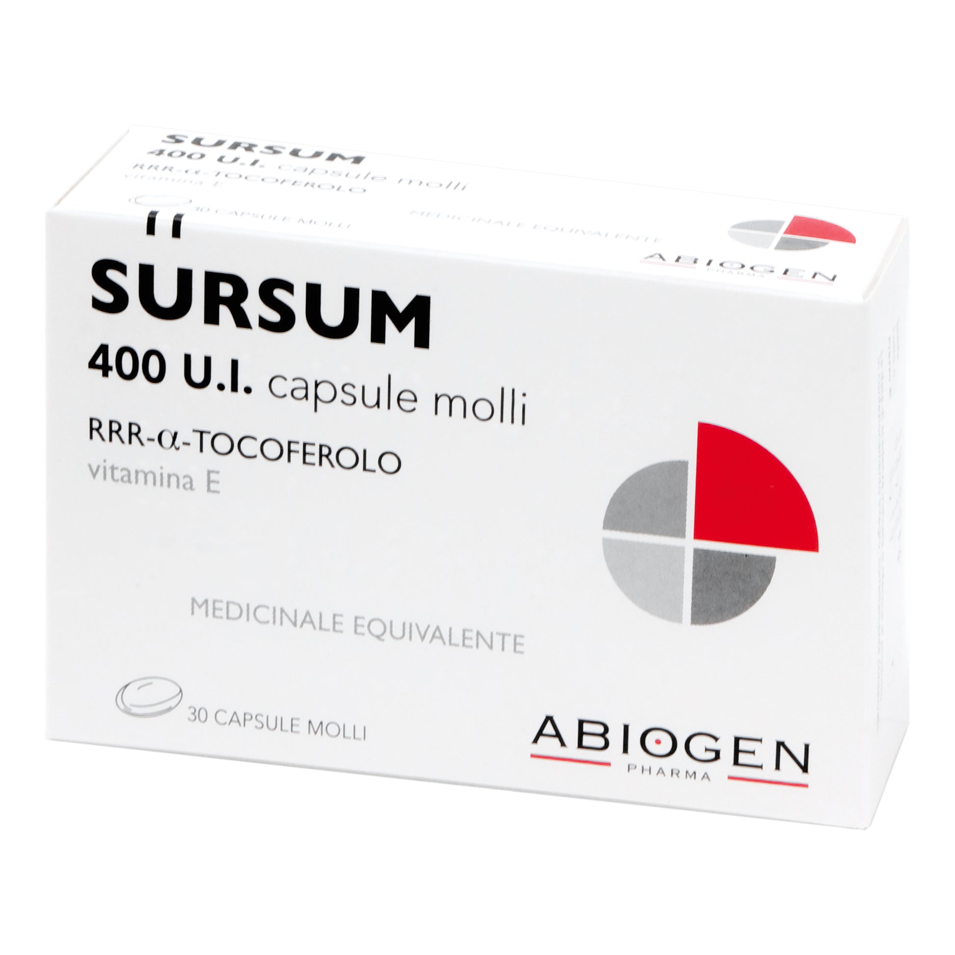 Una capsula molle di SURSUM 200 U.I. contiene: Principio attivo: RRR–α–Tocoferolo mg 140 (pari a 200 U.I. di vitamina E). Una capsula molle di SURSUM 400 U.I. contiene: Principio attivo: RRR–α–Tocoferolo mg 280 (pari a 400 U.I. di vitamina E). Eccipiente con effetti noti: olio di soia raffinato. Per l’elenco completo degli eccipienti, vedere paragrafo 6.1.