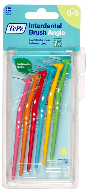 TePe Angle dispone di una testina angolata per un facile accesso agli spazi dei denti posteriori. Può essere utilizzato sia dall’esterno che dall’interno.